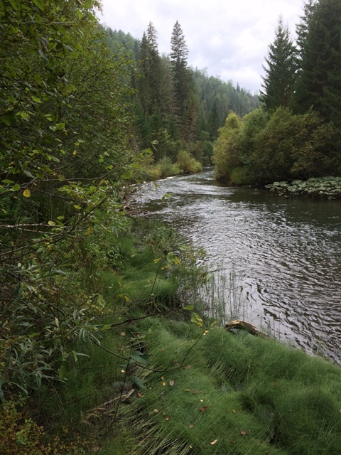 Сегодня прогулялся по Базаихе. Даунстрим с мокрой мухой, поклёвок мало. Что-то речка совсем пустая.