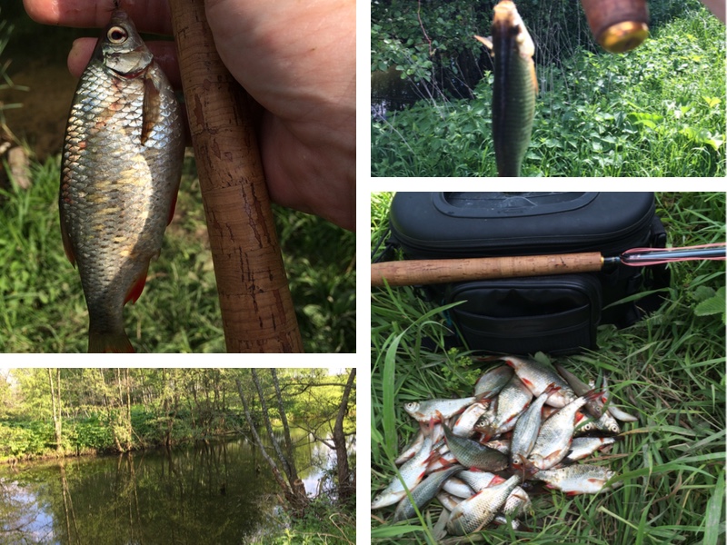 Если коротко, то на каждом кругу рыбьей карусели получалось выудить 1-2 рыбки. К 15 часам ветер сменился, по воде пошла рябь, карусель остановилась. Рыба встала под кустами, хотя кормиться не прекратила. Видно подбирала мухоту, которую сдувало с веток. Но вот ситуацию это только усугубило! После поимки или неудачной подсечки рыбы, клев прекращался минут на 10. Успокоившись кормежка возобновлялась, но опять же до следующей рыбки.