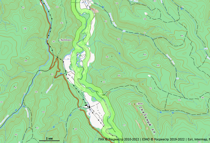 На карте она обозначена светло-зелёным цветом вдоль реки.