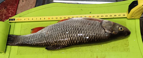 В очередной раз вывез внуков искупаться. Днём была жара +30, к вечеру стало более терпимо. Оставил их на длинном плёсе с песчаным дном и глубиной мне чуть выше колена испытывать очки для плавания, сам пошел вверх по плёсу с ТП проф 400. Сначала на нимфу взяла вот такая сорожка: