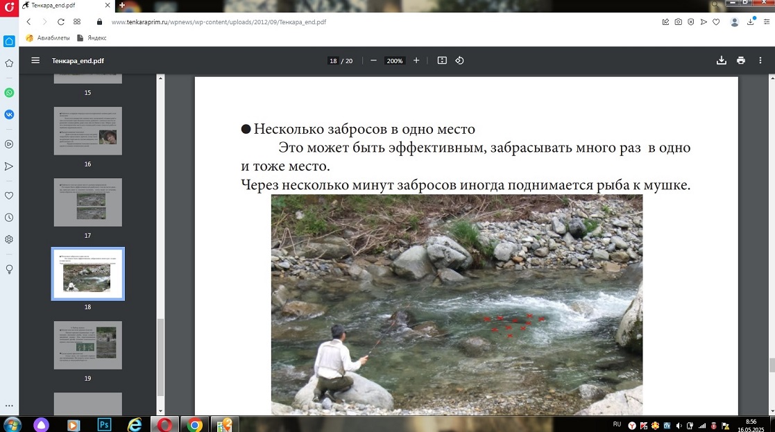Сегодня применял метод выманивания "пустой заброс". "Пустой заброс" - это техника , при которой мушка бьется о поверхность воды вокруг выбранной предполагаемой стоянки ожидания корма с помощью коротких "выстреливающих" вертикальных забросов без замаха назад, позволяя возбудить интерес рыбы к мушке. Вот сегодня у меня только такой метод выманивания работал.