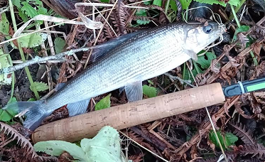 Сегодня снова съездил на ту же микро-речку, только ещё выше по течению, там я ещё ни разу не был. В этот раз мелких (10-12 см) не попалось ни одного. Самый крупный, как и в прошлый раз - 170 г, самый мелкий - 110 г. (в прошлый раз - ровно 100), всего 4 рыбки. Как и в прошлый раз, все с икрой или с молоками. Прошёл за три часа, если по прямой, почти 2 км. В реке много завалов, большинство приходилось пропускать, поскольку закинуть даже арбалетным забросом было невозможно. Бобровая плотина встретилась одна, но какая! - выше моего роста: стоя внизу, я не видел поверхности воды за нею! Выше вся луговина была затоплена, и приходилось сделать не один крюк, чтобы подобраться к основному руслу. Метров на 200 выше неё течения практически не было, но один хариус клюнул и в стоячей воде. Остальные же брали в русле на течении.