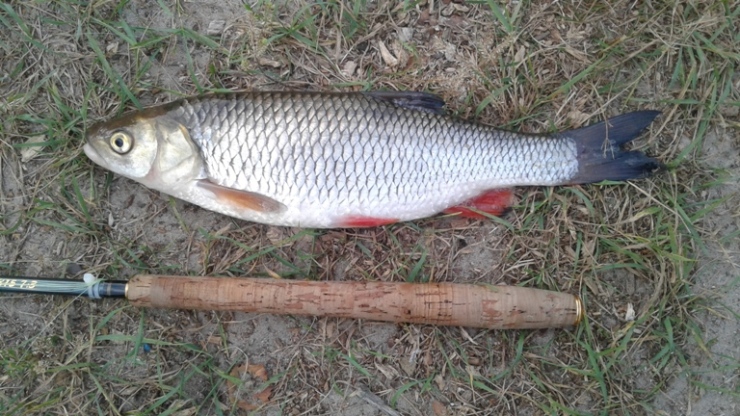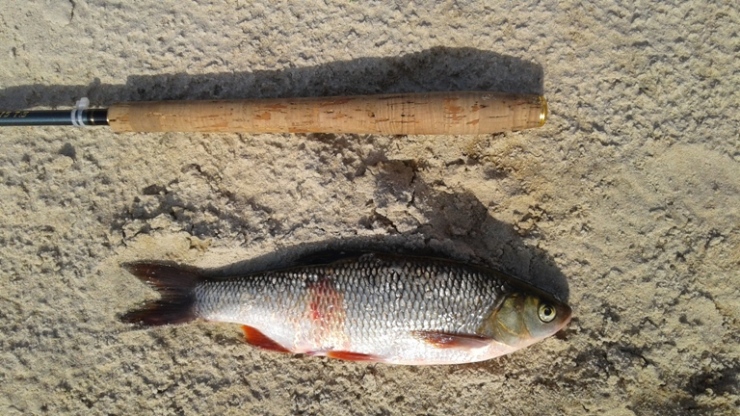 Ловил на середине Керженца в бревнах. Стоишь у бревна по пояс в воде, а с другой стороны бревна голавлики 100-150гр. Тенкара 3,15 оказалась длинновата. Хватило бы 2,35, жаль не взял ее с собой.