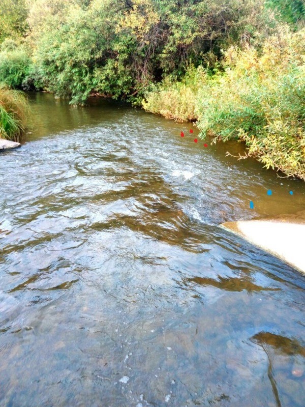 Крупного надо искать, а мелкий есть по всей речке. На фото перекаты мелковаты для крупного и да, крупный более осторожен. Дистанция и высота силуэта.