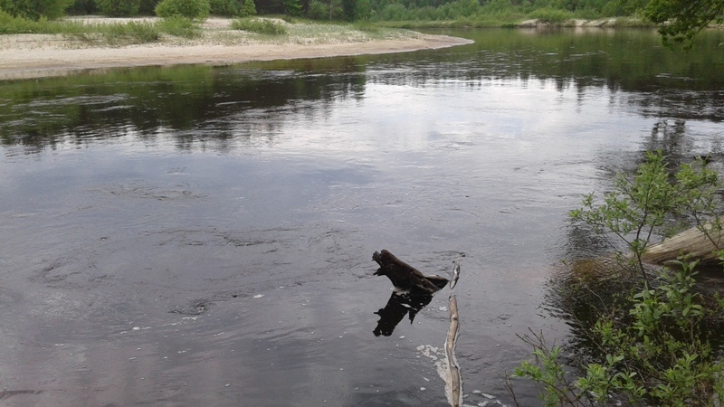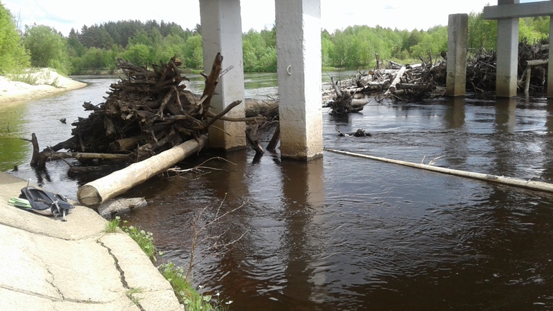 Ночью разбудил дождь… Договорились если не закончится, спать до упора. Проснулись от жары в палатке. На небе кучные облака, светит солнце, а под ногами хлюпает и налипает грязь. Пробиваться после такого дождя, на нашем авто не вариант. За трактором идти далеко, и все в деревне скорее на веселе в честь праздника. Пьём кофе, греемся на солнышке. Обсуждаем варианты, что делать дальше и куда выдвигаться. Через брод в сторону залива проезжает КРАЗ… удивляемся… Побеждает вариант пробежаться вверх-вниз по реке вдоль деревни и вернуться к машине. Идем до вчерашнего разбоя. По нолям… Рыбы не видно и не слышно, а вчера было по другому. Да.. вода чуток мутнее но не критично, идём выше. А вот и вчерашний плёс с окунем, а вон и сам окунь. А ставить нимфу, мы не будем… Будем верить в одну кебари. Заброс чуть выше и сплав… не реагирует. Заброс и подтяжка, коннектор поближе над водой, левел в воде – интересуется, догоняет, но не атакует. Попробуем порезче подтяжки. Есть!! Взял кебарика!!! Что за ерунда!!! Я же видел как он схватил и удар был… Хммм, поставлю кебарика покрупнее. Ставлю 14 номер. Заброс, резкие подтяжки.. схватил.. удар… И снова пусто… Что не так?!?! Подтяжка.. догоняет.. делаю паузу.. он хватает – подсекаю…а он не засекается.. Так он успевает выплюнуть!!! Заброс… резкие подтяжки, без прослабления и пауз.. Есть!!!! Трепыхается!!! Заглотил под жабры!!! Думаю, запоминаю… Это хариус делает выход, хватает и на развороте засекается. А этот рыб стоит против течения догоняет напрямик и так же прямиком и атакует. Хватает кебарика и останавливается. Пробует и выплёвывает. А значит будем проводить так, чтоб не дать шанса выплюнуть… Ага!! Вот так надо!!! Ещё пять штук окуней с ладошку отправляются в пакет и кошке радость и нам под пиво. Стайка разбивается и куда-то прячется. Идём выше. А вот хорошая струйка за камнем.. чего то я её не приметил. Захожу повыше и делаю проводку с подтяжками как накануне.. Но что-то не так… Раз.. два.. три.. И вот черная спина показалась… А попробуем повыше провести… Есть!!! Ага… Сегодня значит мы стоим в начале струи!!! Сход… Сход… Есть!!! Тишина… Вернёмся к плёсу.