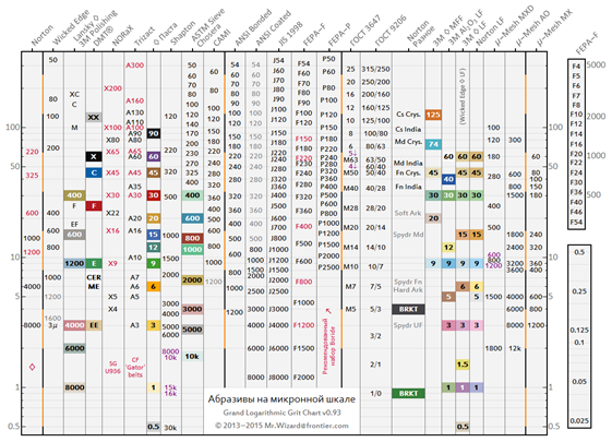 теперь поговорим о зернистости. С зернистостью еще та засада. Существуют в разных странах разные системы, которые не совпадают по крупности зерна и маркировки.