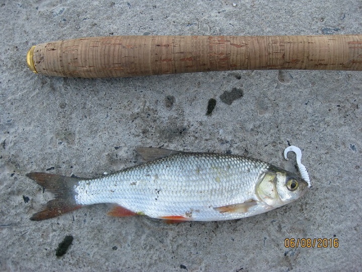 Николай ловит голавля на 5см мушку.