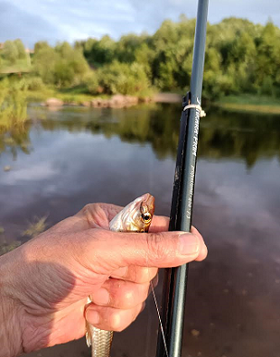 Был в Ярославле, по традиции посетил вечером знакомую речку. Начал с нимфы - почти никакой реакции. Поставил лёгкую почти не тонущую кебари - начались поклёвки, и вскоре вытащил первого голавлёнка: