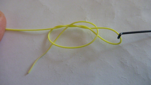 К кончику удилища привязываем шнур , используя специальный легкий узел, к другому концу шнура привязываем поводок из лески, к поводку привязываем мушку. Все. Снасть готова, можно идти рыбачить.